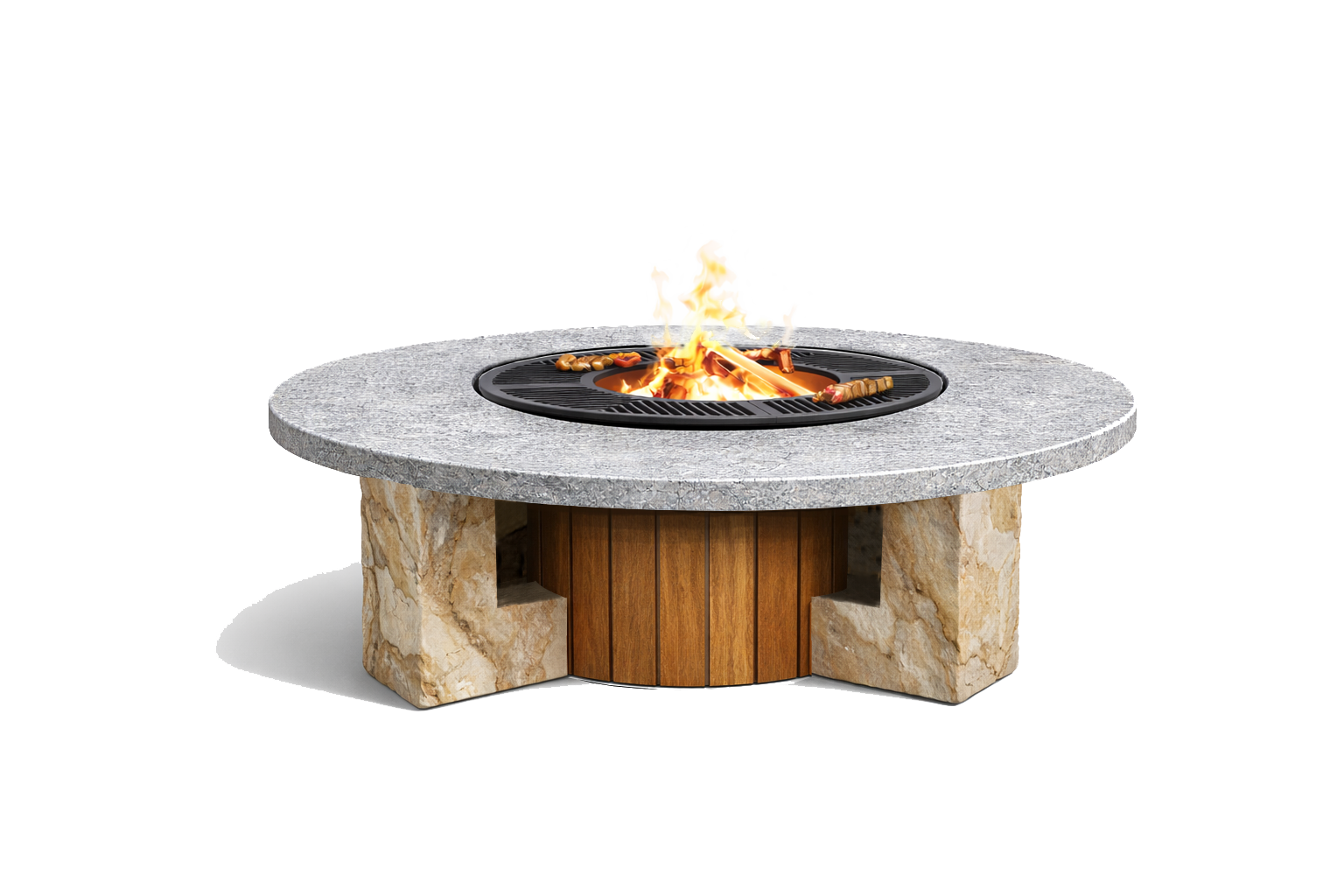 DESCRIPTION: The HALO 40” Round Fire Pit is a frameless, enclosure-only composite fire pit base (40” diameter x 17” high) designed to accept a variety of 24” round burner inserts.